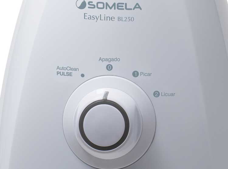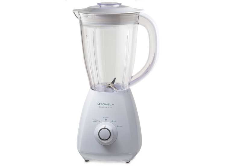 Licuadora EasyLine BL250 de Somela, con práctico jarro de 1.5 litros de capacidad, tapa con dosificador y regulador de espuma. Con ella podrás licuar, preparar todo tipo de mezclas y hasta picar hielo con la función pulse. Además, las cuchillas de acero inoxidable son desmontables para facilitar la limpieza.